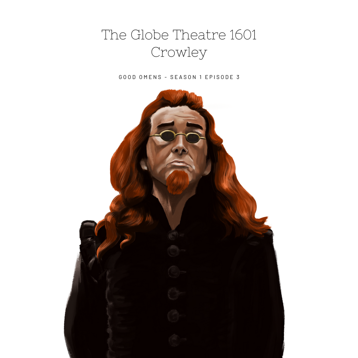 A collection of coloured portrait studies from the show "Good Omens".